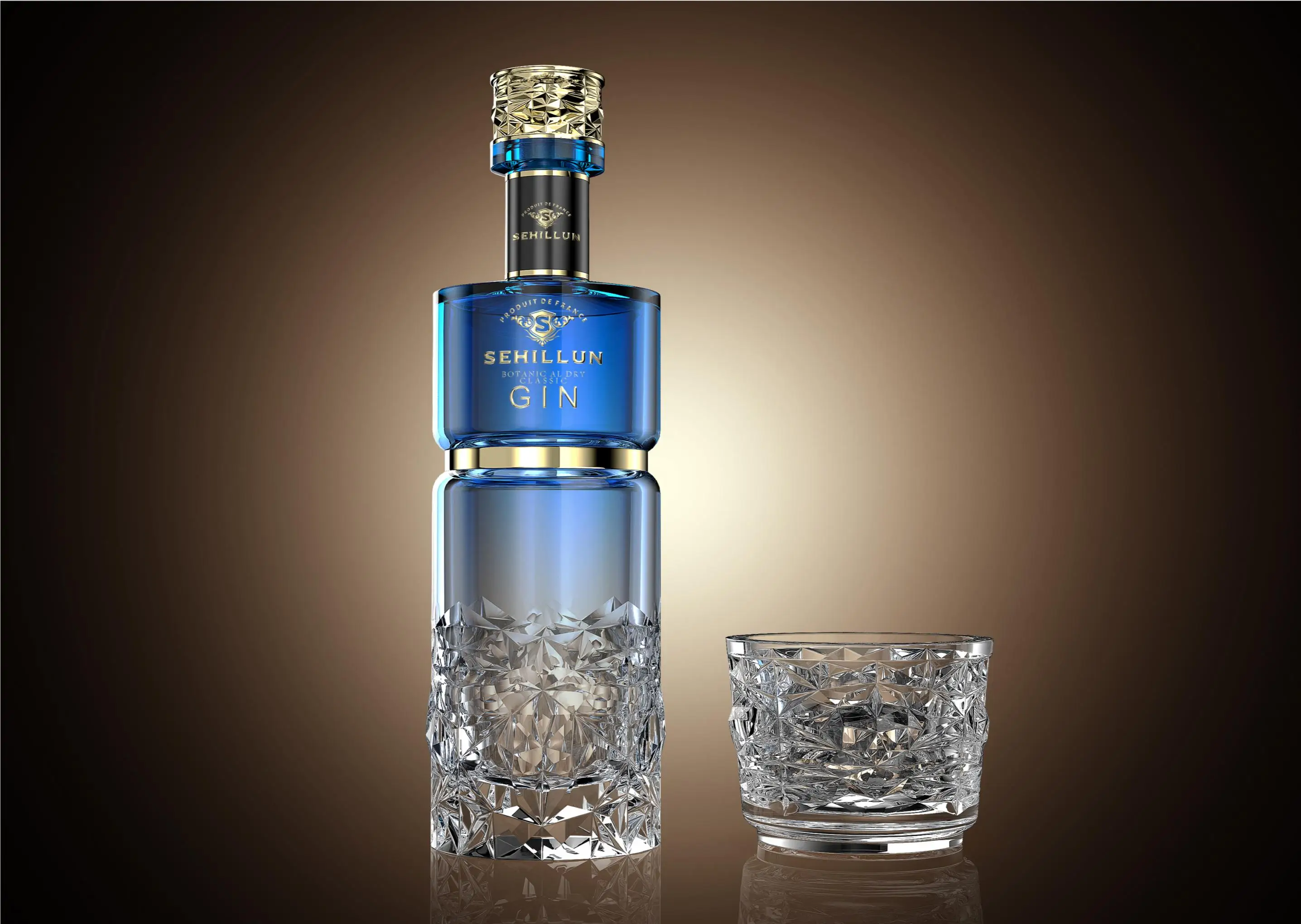 An optional 700 ml or 750 ml empty glass gin spirits bottle sample luxurious with gift box