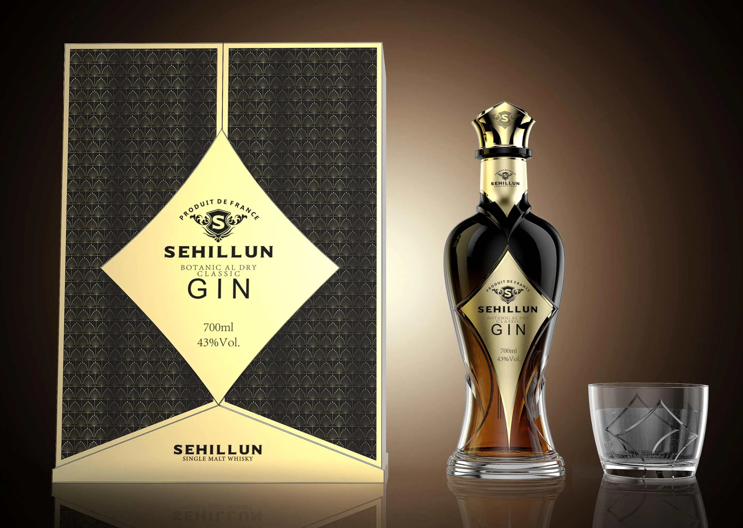 Clear bottle with oem unique logo and premium gin and spirits included in a custom package.