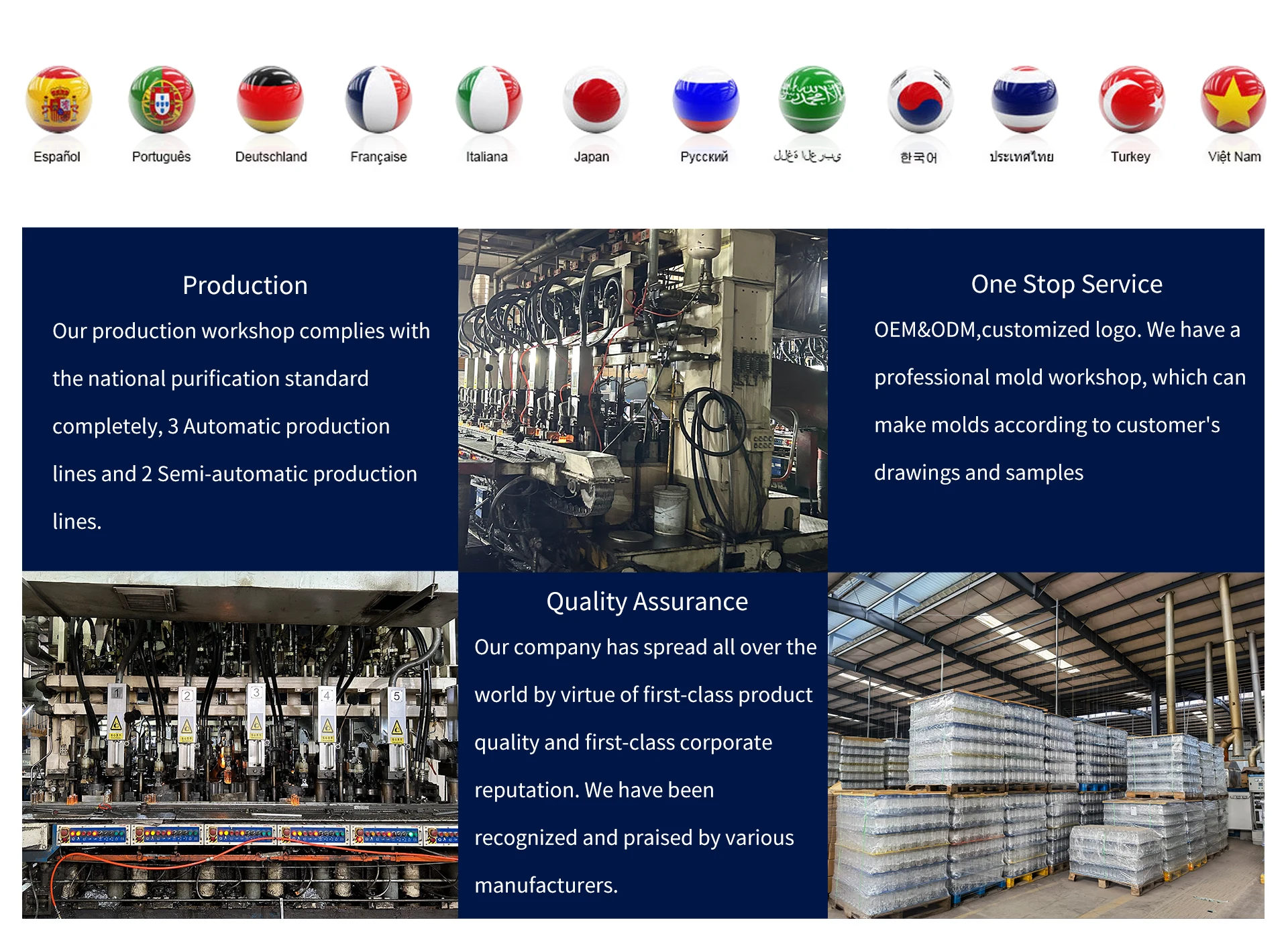 We focus on production and designs for glass packing, and we have quality control in every link from raw materials to production and delivery to win many global customers' good feedback and Long-term cooperation