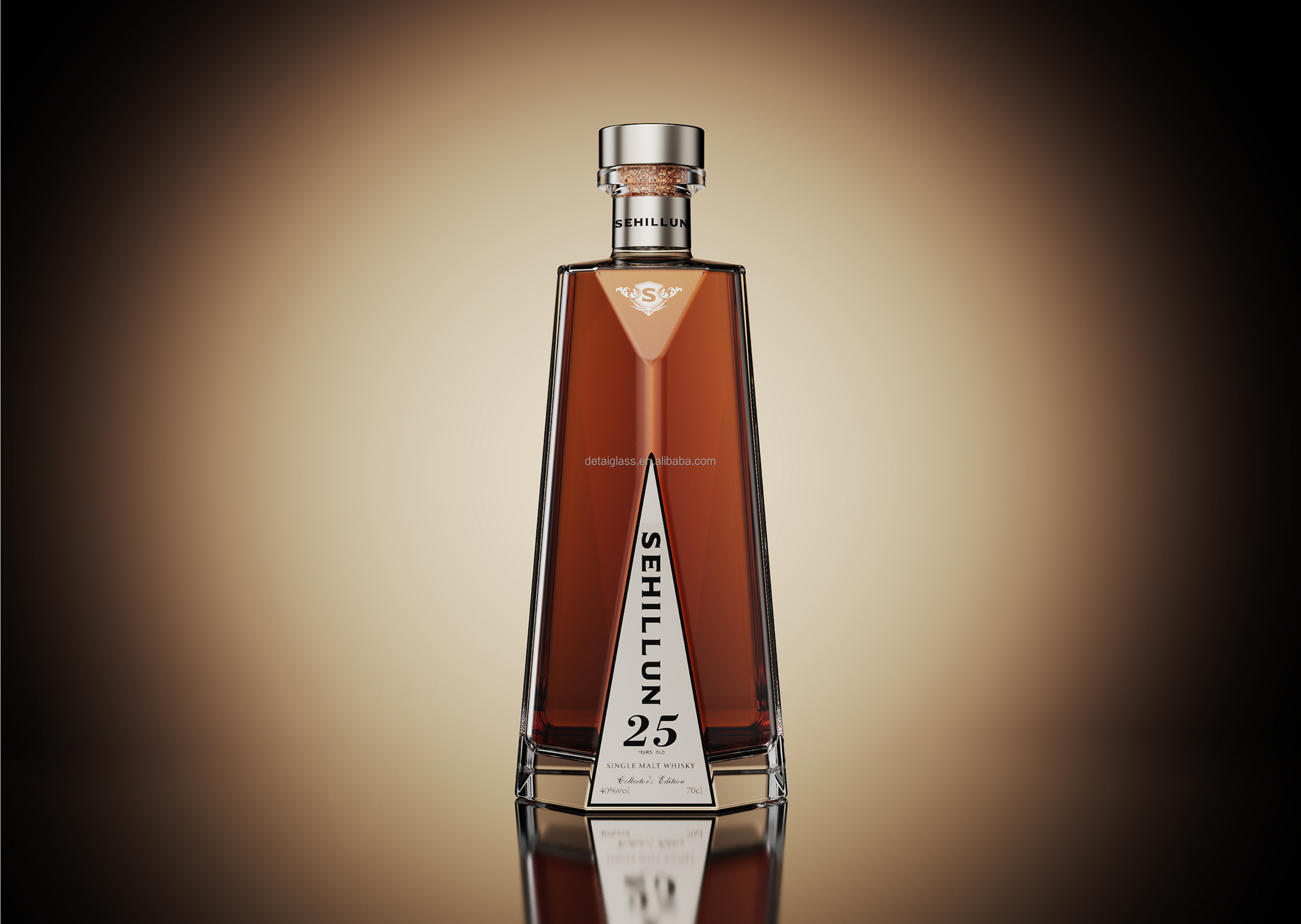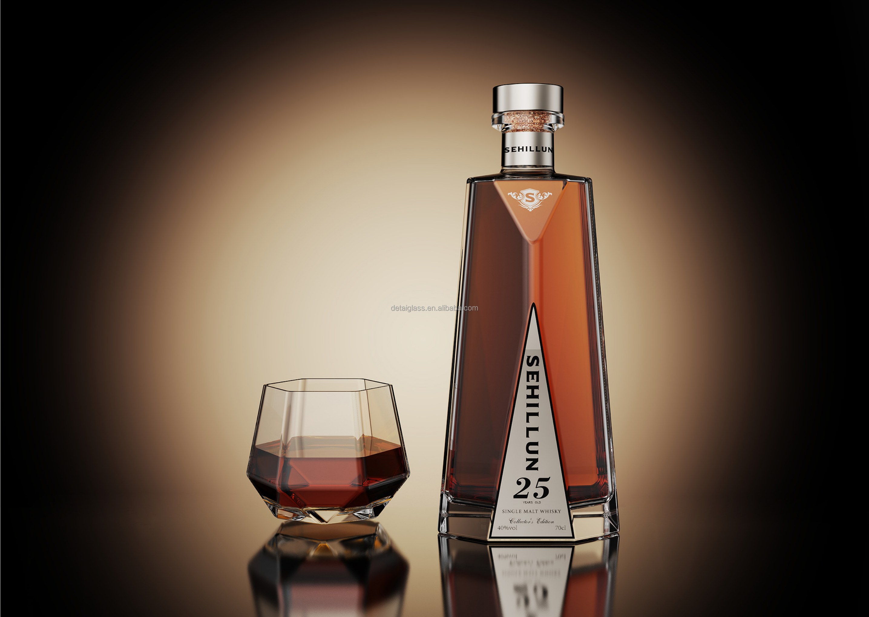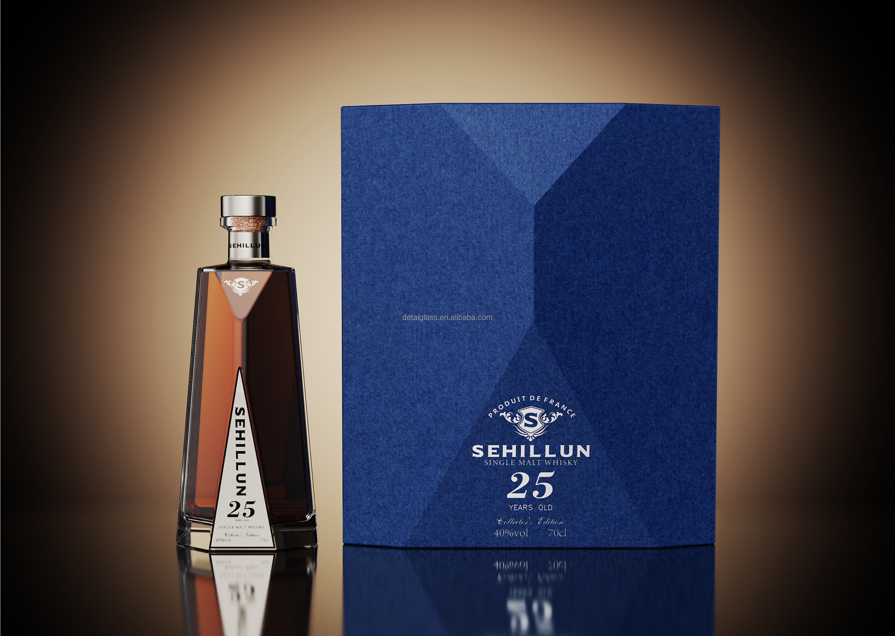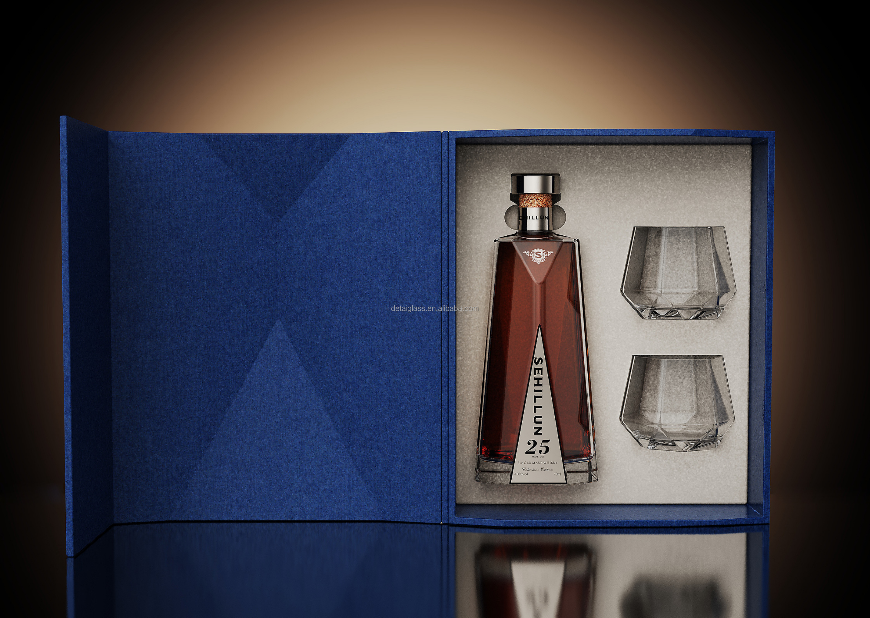 Anpassningsbara tomma flaskor för whiskey, vodka, gin, tequila, rom och brandy med magnetisk förpackningslåda från Kina, blank laminering, tryckning, handtag